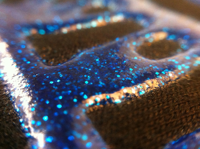Glossy thick glitter reminiscent of bicycle seats of the 1970’s