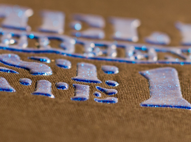 Print will be tackey. Large solid designs will result in a concave appearance where the outside edge is higher than the center. Detail that is below 6 points will be lost.
